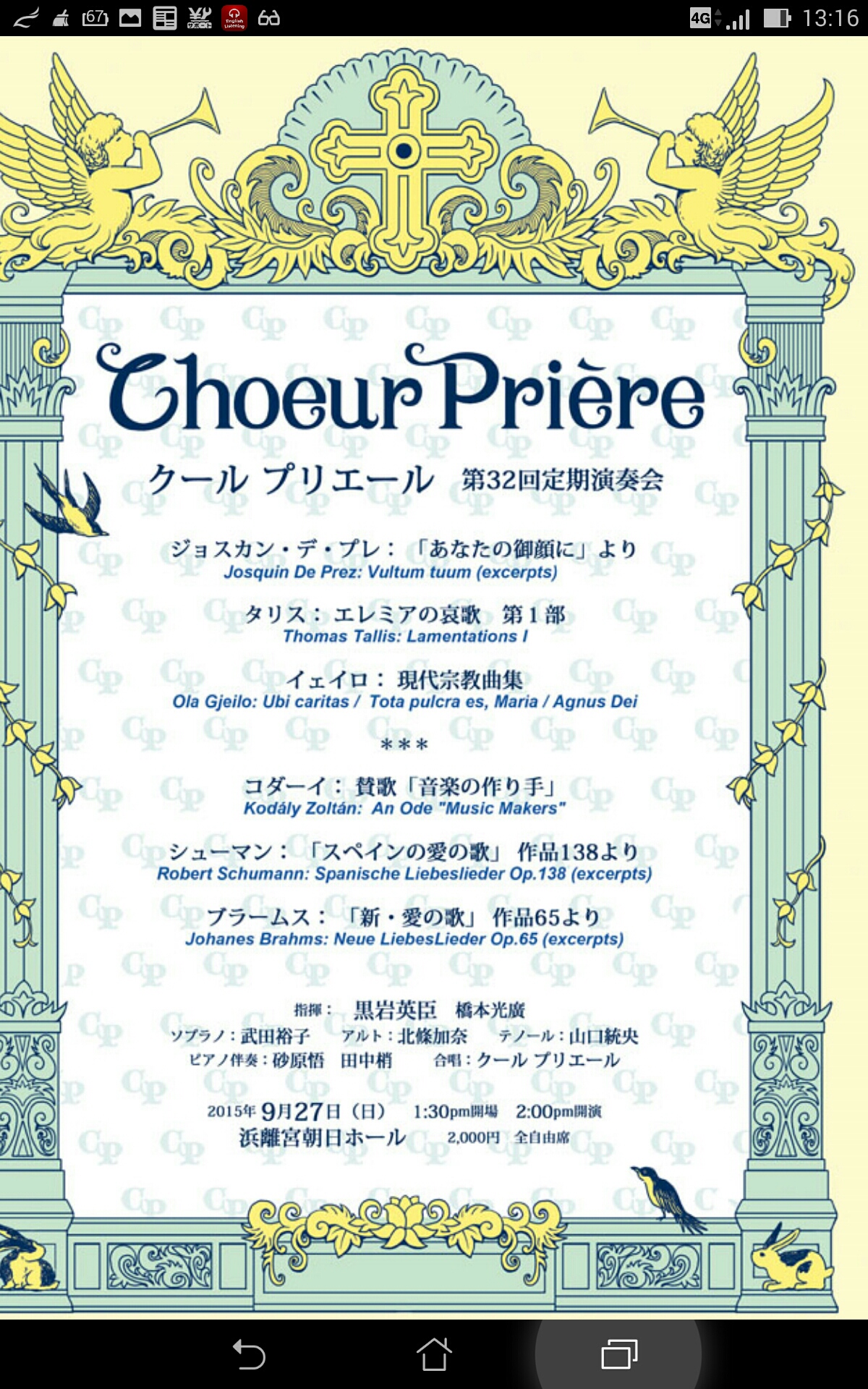 9月末に開催される演奏会のお誘いが