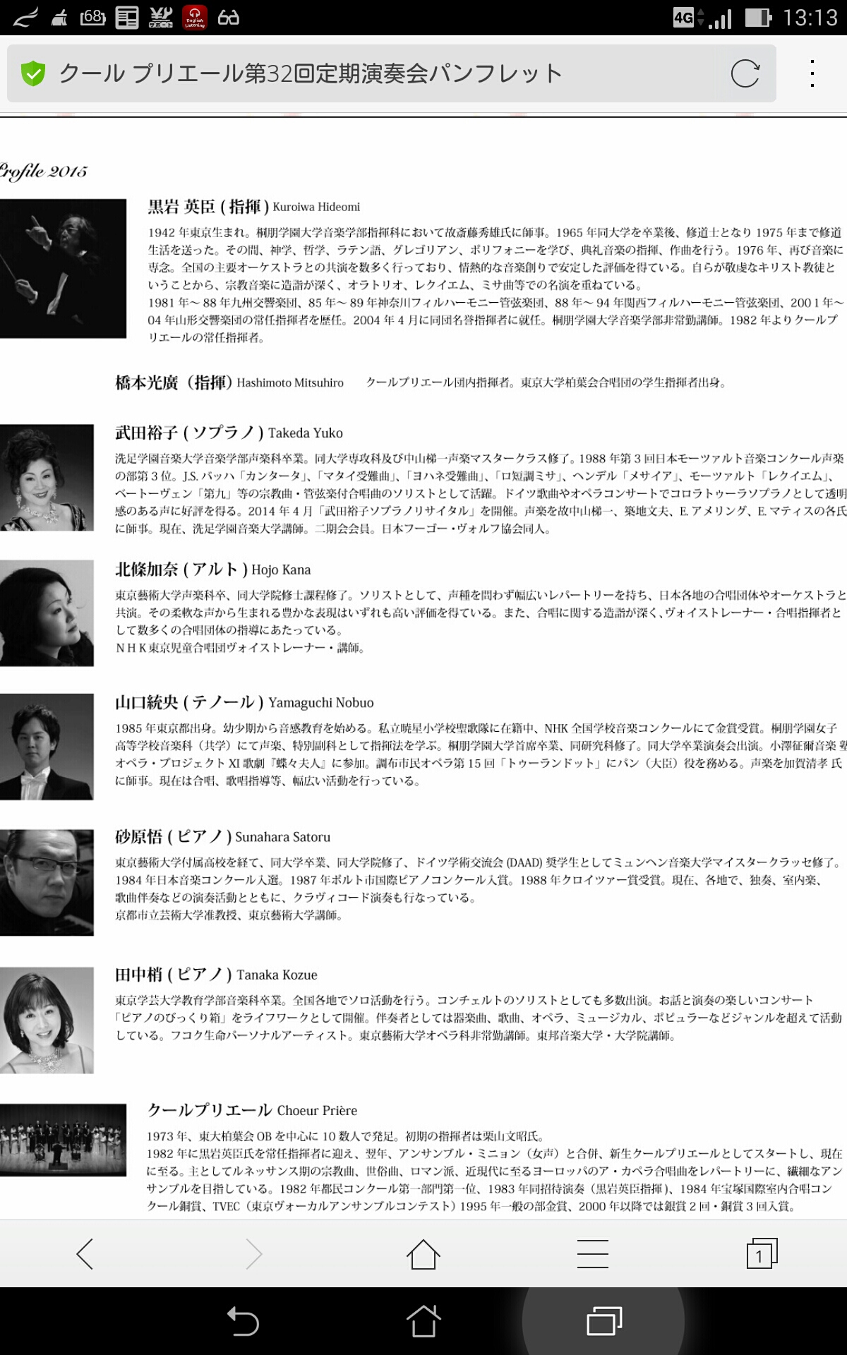 合唱団「クール・プリエール」で