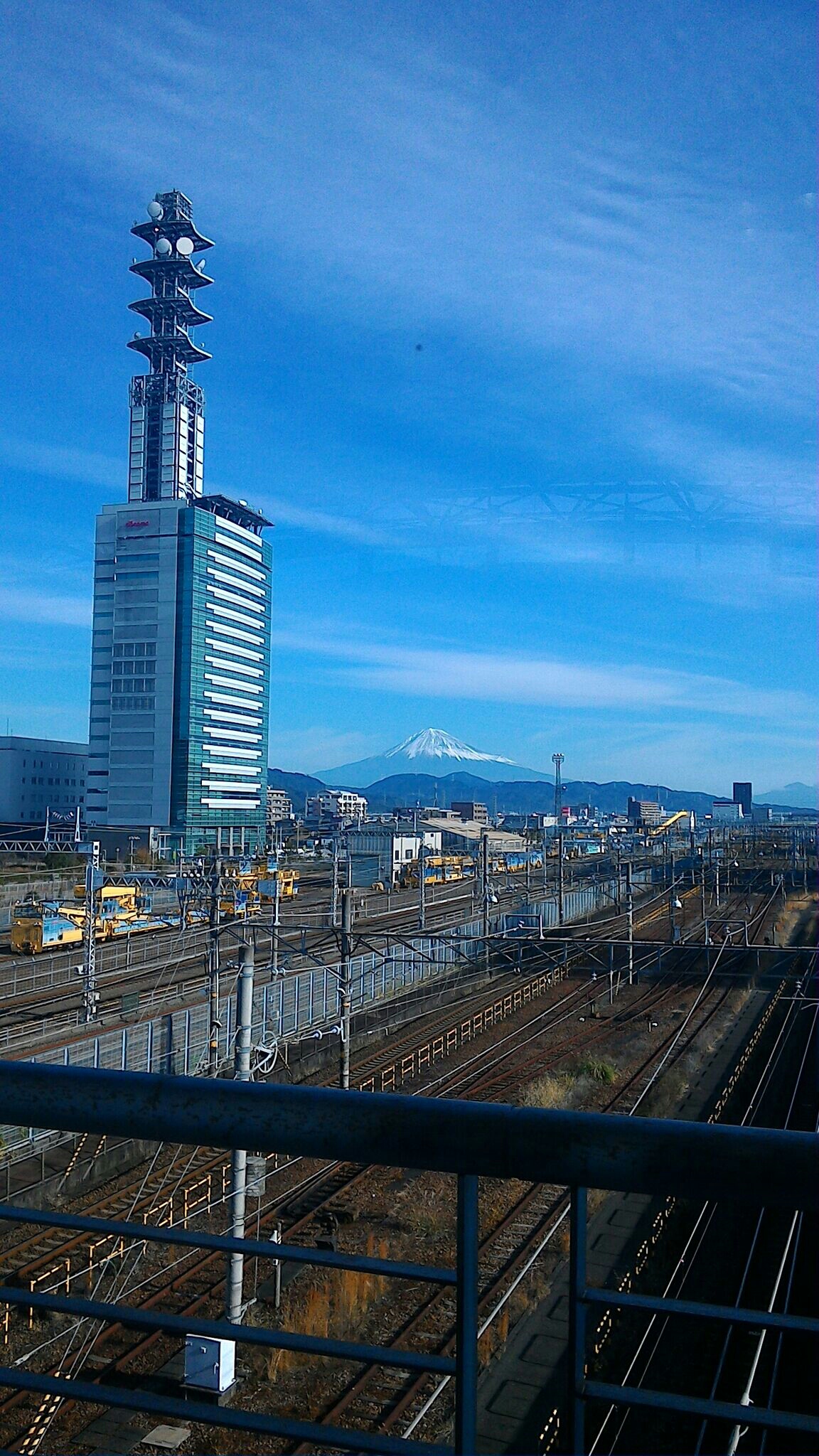 東静岡駅コンコースから見る雪化粧した