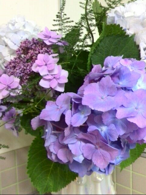 写真は、静岡バッハ練習会場の教会に活けられた紫陽花。