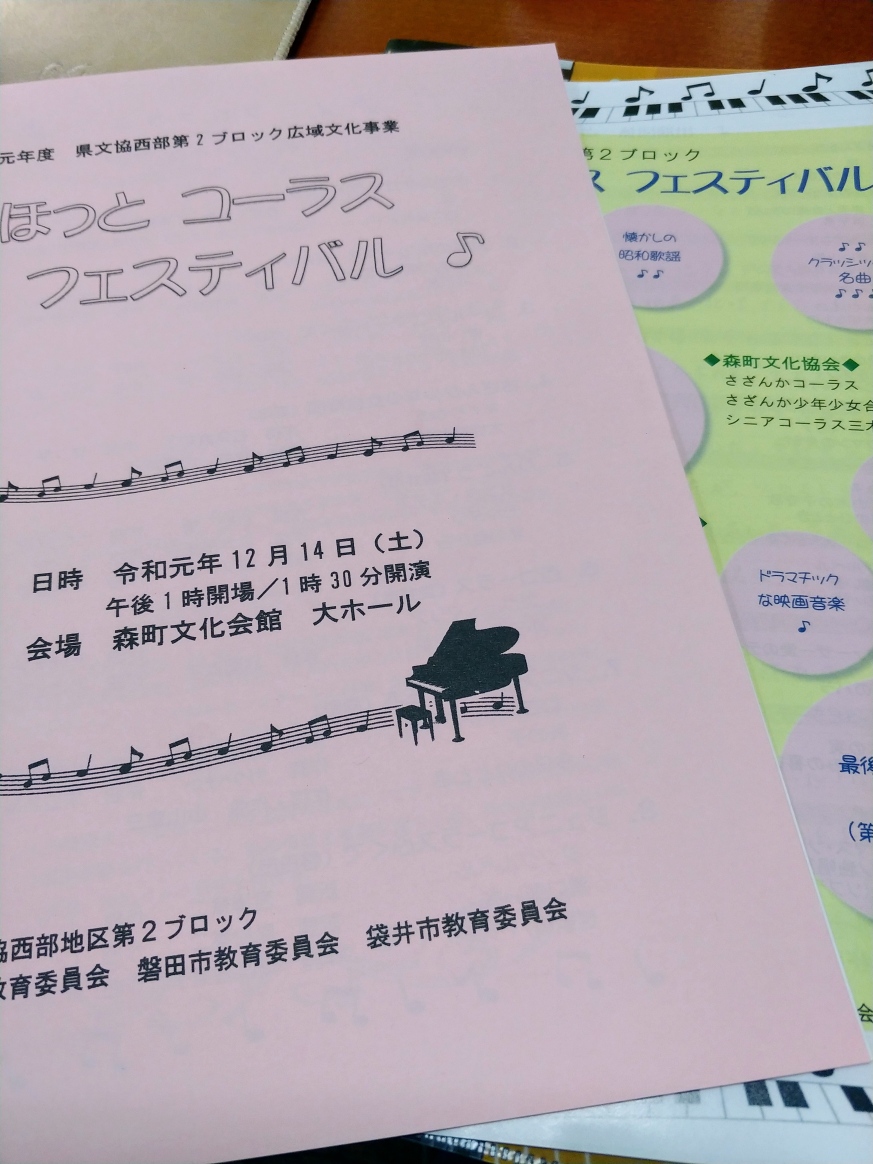 12月14日(土)は、森町で開催された「ほっとコーラスフェスティバル」に、磐田コーロユビラーテと合同で参加しました。