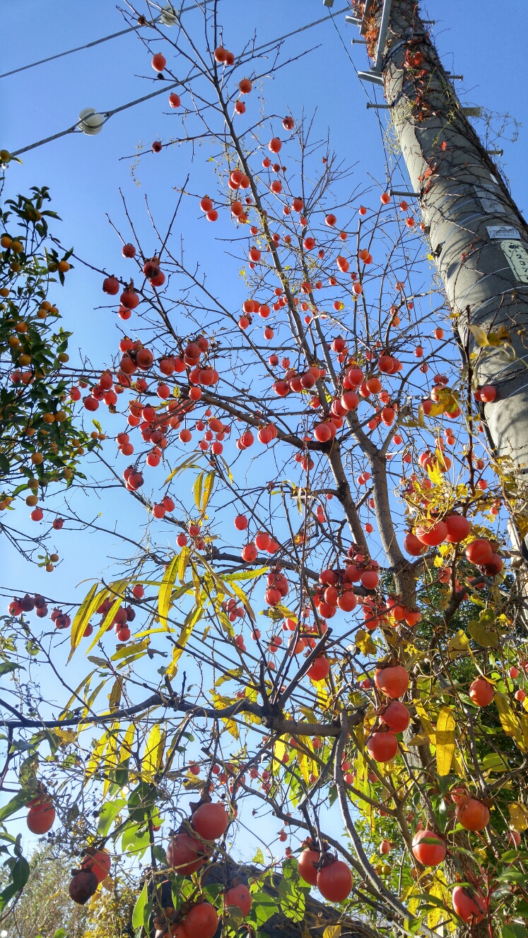 秋の名残りその1。たわわに実った柿。