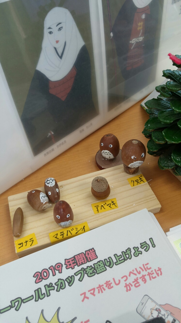 秋の名残りその2。ドングリさんの装い。