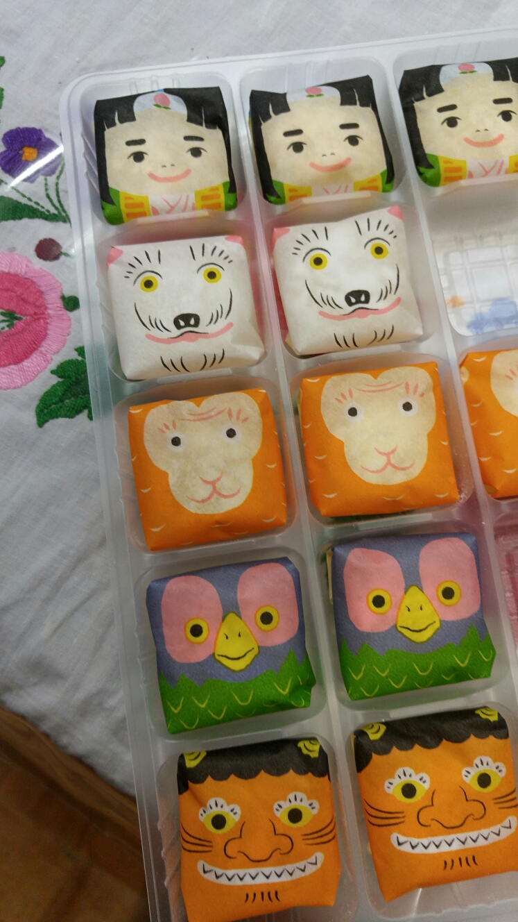 中身はこんな。桃太郎さんを食べようかな? おサルさんを食べようかな?