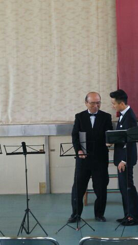 「雪はのんのん」の台詞指導で、すっかり子供たちの人気の的となったソプラノのNちゃんと、イケメンのKさんのデュエットです。言葉は全て猫語です。今回の演出は、歌の先生のKさんネコ、歌の練習なんか、やだなぁ、とすねてる女の子ネコNちゃんの掛け合いです。やだ、やだ、やりたくないと、生徒さんのお席に逃げて行くNちゃんに、拍手喝采。演奏の最後に代表で感想を言ってくれた小学生の男の子と中学生の女の子も、ネコちゃんが一番印象的だったそうで、一緒になって猫語でニャアニャアしている生徒さんがたくさん。思わず私たちも大笑い。