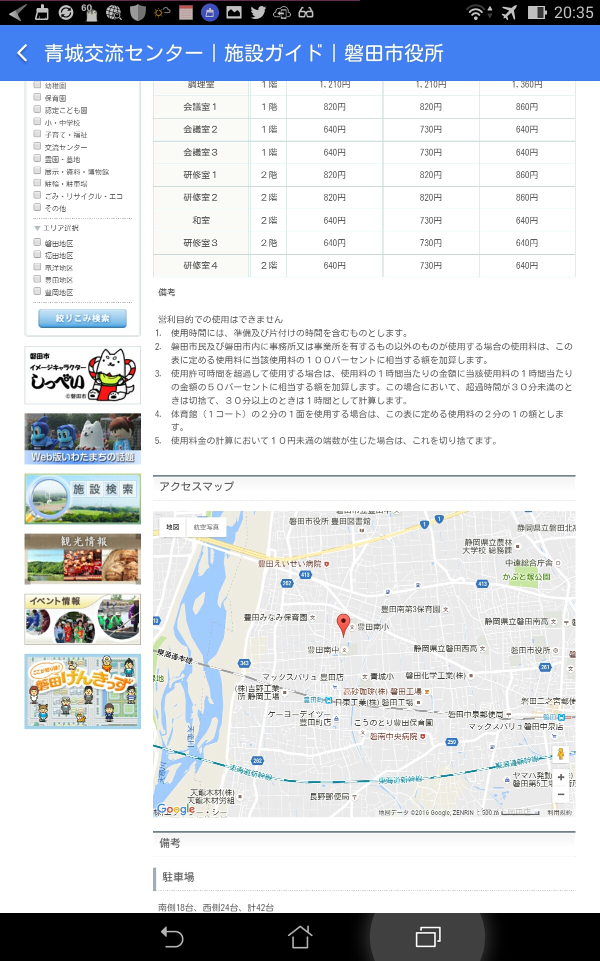 ホールです。場所は大ざっぱに言うと、JR磐田と